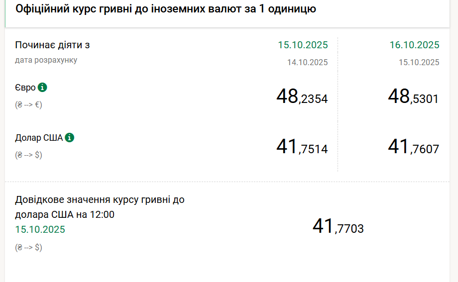 1 euro - 48,53 UAH (48,23 UAH od 15 października).
