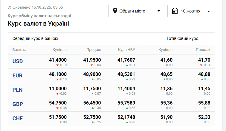 w Monobanku: 41,40 - 41,83 UAH/$ i 48,10 - 48,78 UAH/EUR.