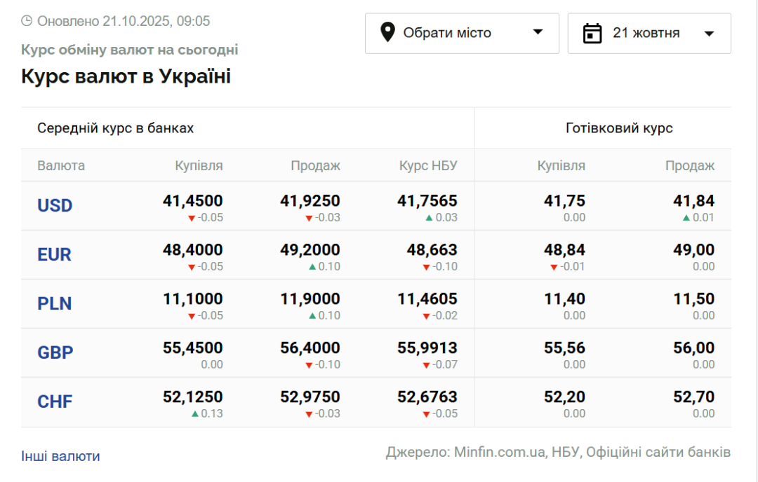 w Privatbank 41,50 - 42,01 UAH/$ i 48,44 - 49,26 UAH/EUR,