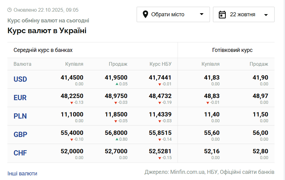 w monobanku: 41,55 - 41,99 UAH/$ i 48,20 - 48,89 UAH/EUR.