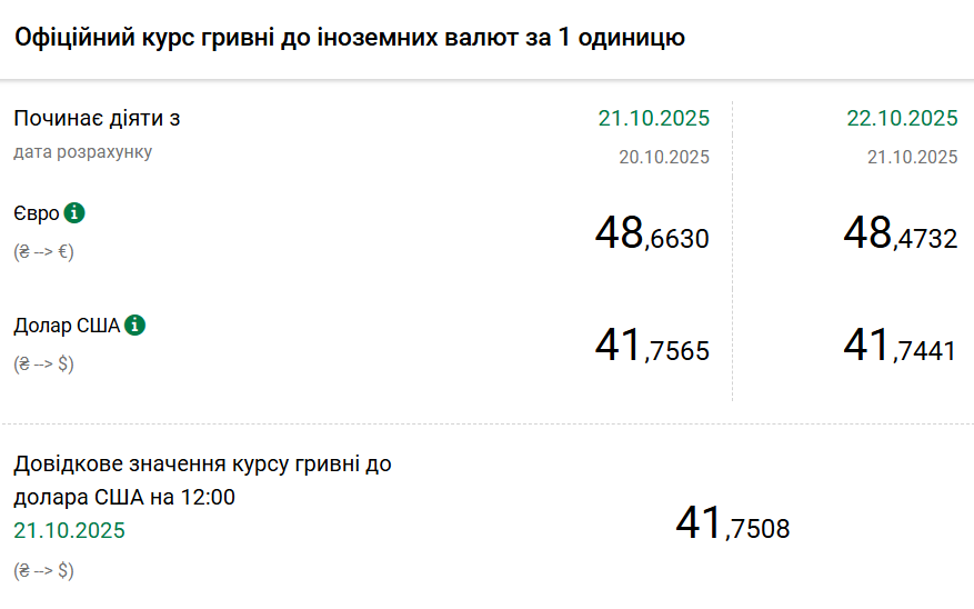 1 dolar amerykański - 41,74 UAH (41,75 UAH od 21 października);