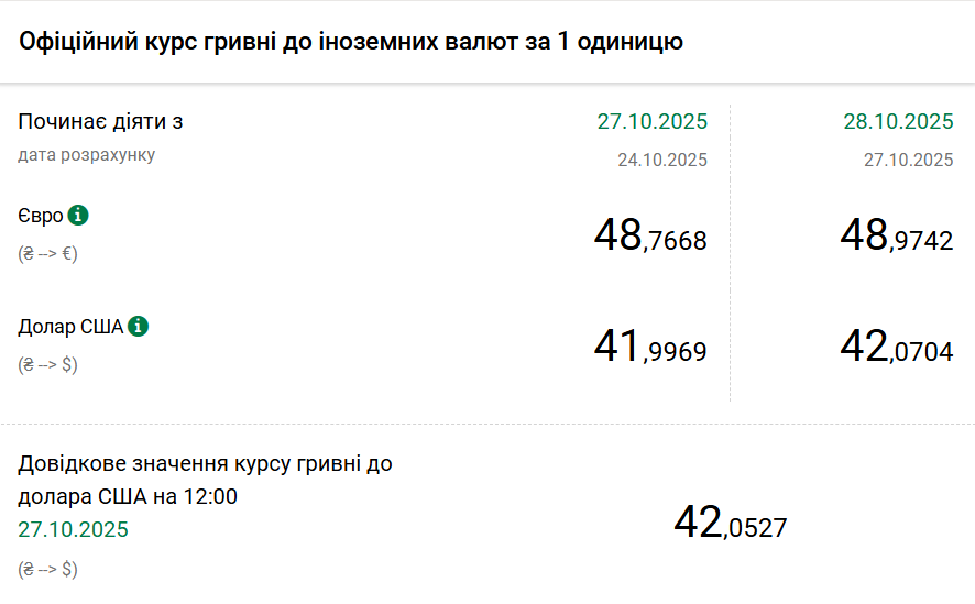 1 euro - 48,97 UAH (48,76 UAH od 27 października).