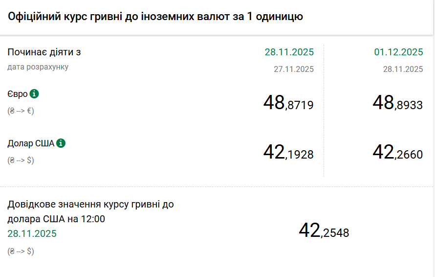 1 dolar amerykański - 42,26 UAH (42,19 UAH na dzień 28 listopada);