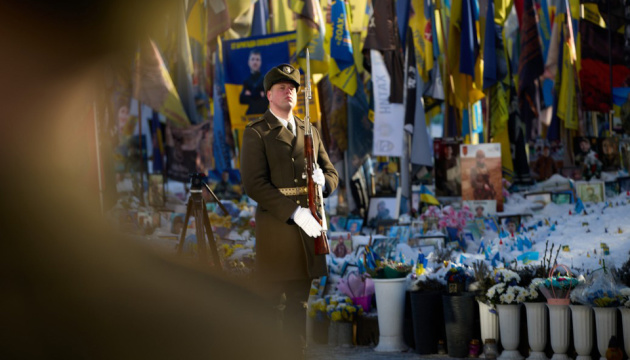 Zełenski i Rutte uczcili pamięć poległych żołnierzy ukraińskich na placu Niepodległości / Zdjęcie: Biuro Prezydenta