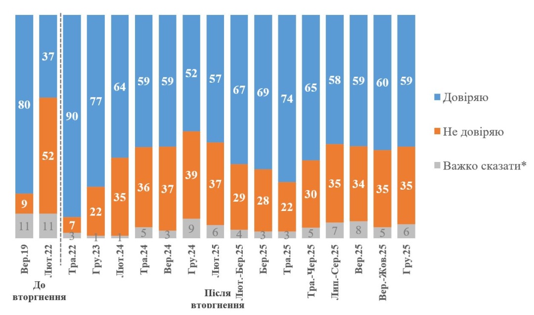 Jak podaje Ukrinform, świadczą o tym dane z badania przeprowadzonego przez Kijowski Międzynarodowy Instytut Socjologii w dniach od 26 listopada do 29 grudnia 2025 r.
