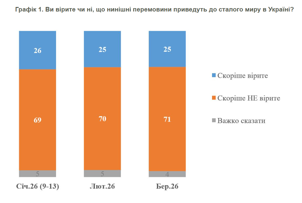 71% Ukraińców nie wierzy, że negocjacje doprowadzą do trwałego pokoju